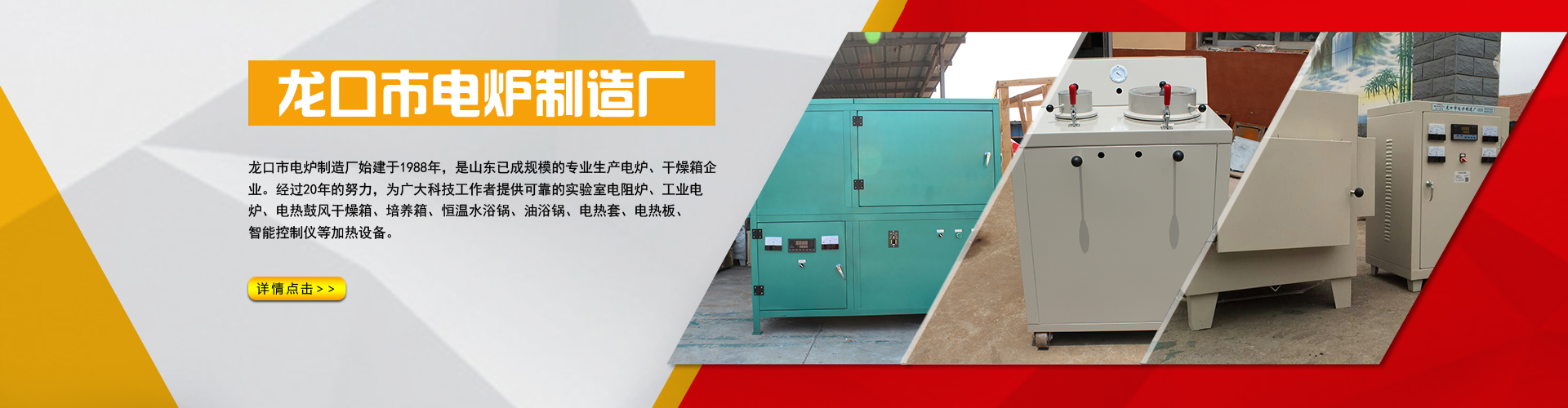 龍口市電爐制造廠始建于1988年,為山東規模專業生產電爐、干燥箱企業。經過20年的努力,為廣大科技工作者提供可靠的實驗室電爐、馬弗爐、灰吹爐、實驗電爐、工業電爐、試金爐、箱式電阻爐、臺車式電阻爐、電熱鼓風干燥箱、培養箱、恒溫水浴鍋、油浴鍋、電熱套、電熱板、智能控制儀等加熱設備。產品暢銷國內各大院校科研機構、工廠礦山、以良好的產品質量,完善的售后服務受到了客戶的好評。 公司擁有一批長期從事設計、研制的高級工程師和專業技術人員。與國內眾多科研院所合作開發具有世界水平的各種非標特種加熱設備,今后我們將不斷努力,依據客戶的需要,改進完善產品性能和檔次,我們忠心期待您的指導和支持。 本廠設有儀器公司、化玻公......